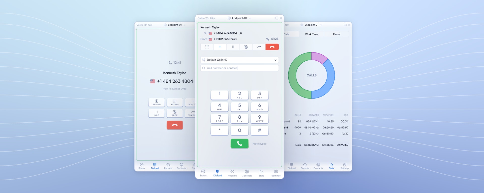 Softphone apps are simple yet powerful VoIP software that enable two-way communication using the power of the Internet and can virtually run on both Windows and Mac devices. They have all the capabilities of traditional phones: You can make outbound and inbound calls, transfer calls, visit the call history and voicemail, but at a fraction of the cost. Remember when you had to dial a number on a landline terminal? No more hardware maintenance, phonebooks, phone lines and forget about busy hands right when you needed to jot down something important you heard during a call.