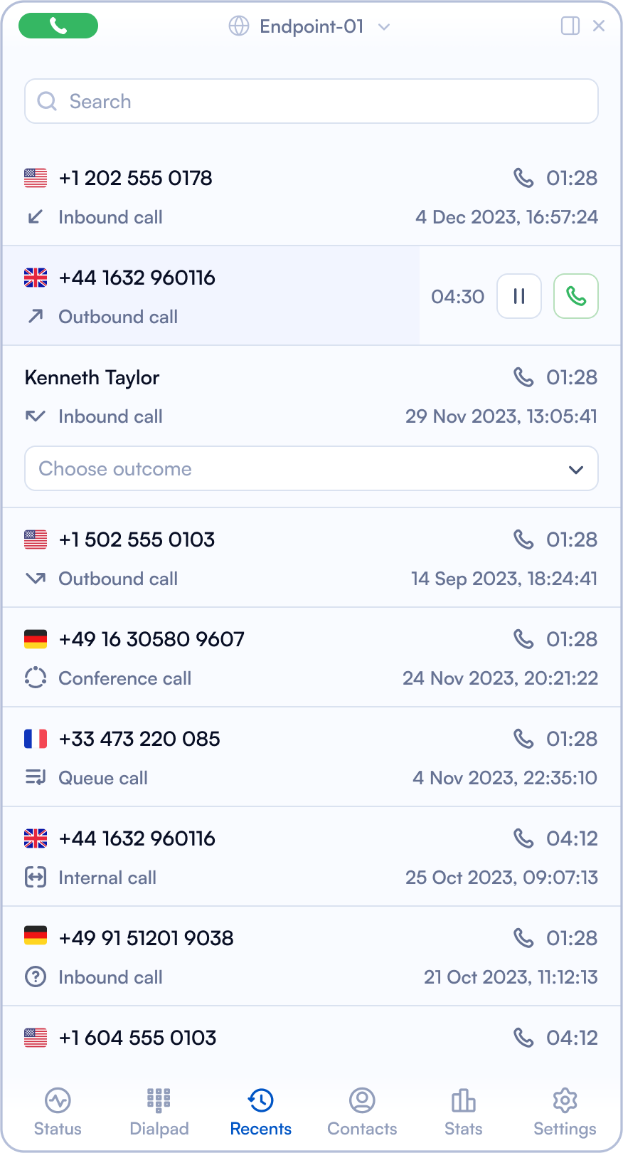 Under ''Recents'' tab you will be able to have an overview about the calls history.