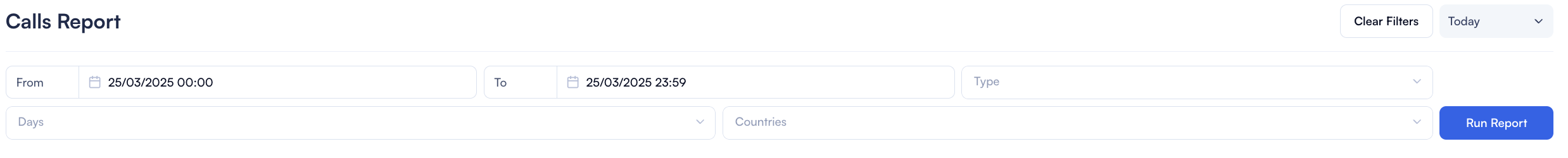 | Countries | Filter calls by country to focus on specific regions. Click on the dropdown menu and type in the name of the country. |