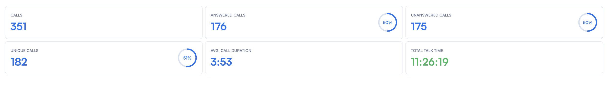 | Unanswered | Number and percentage of calls that were unanswered by each agent. A high percentage could indicate areas for improvement in availability or efficiency. |