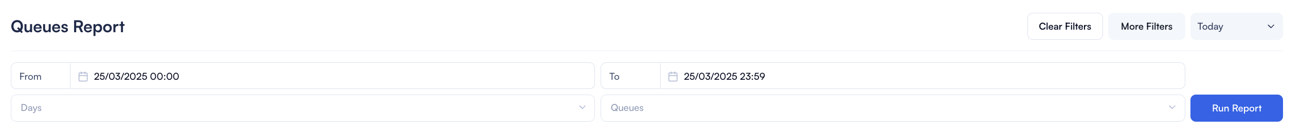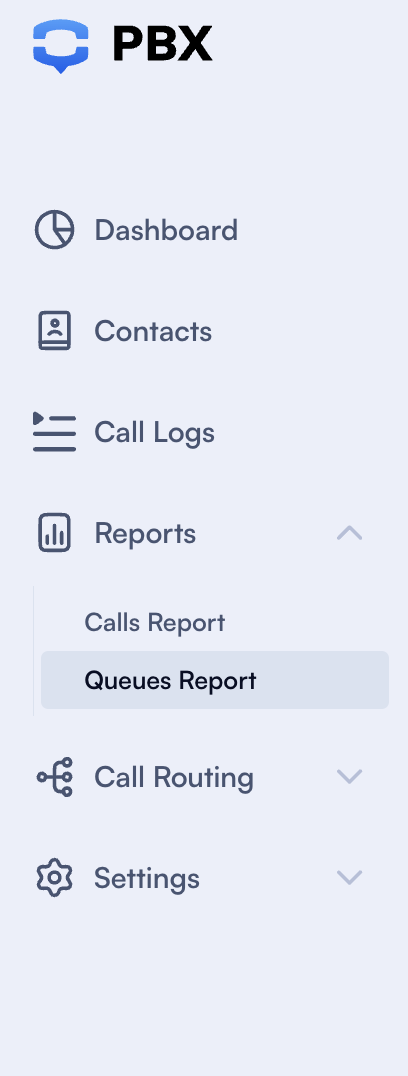 Queues Reports, as the name suggests, is a PBX.IM's feature that displays report results based on the KPIs you've set under General .