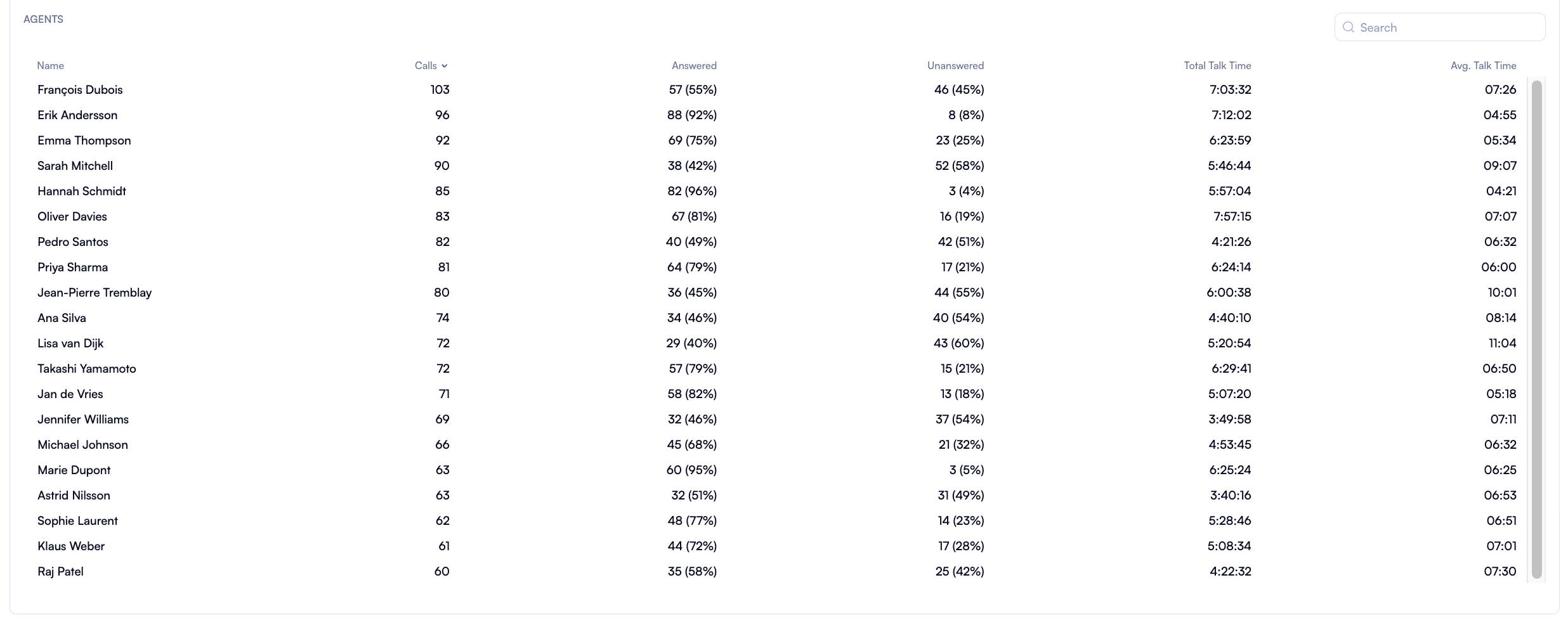 | Avg. Talk Time | Average time agents spent talking with callers. |